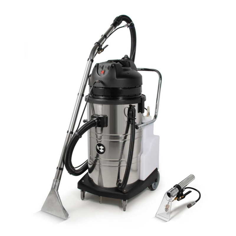 Aspirador profesional de lavado de todo tipo tapicerías ( coche, sofás, sillones, sillas, etc). Posee un motor alta potencia y un depósito para agua sucia de 80 litros de capacidad, lo que proporciona un funcionamiento prolongado y sin problemas. Gracias al carro sobre el que está ensamblado, facilita su transporte y manejo durante su uso.