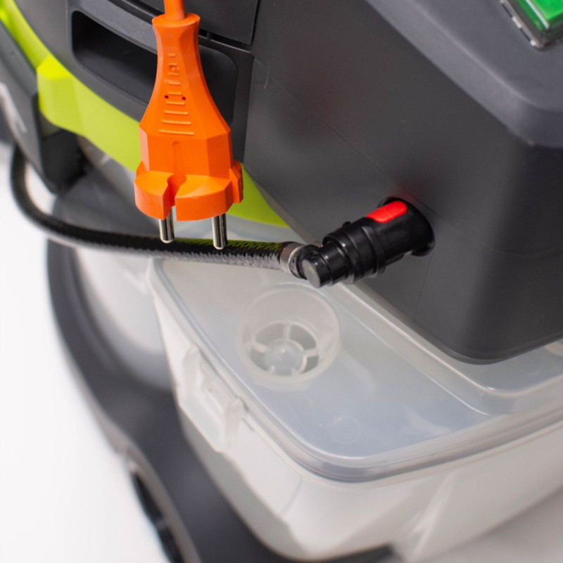 Fabricación en PP 100% reciclable, resistente a altas temperaturas, tensiones e impactos, resultando en un plástico de mayor durabilidad y que no es quebradizo, como es habitual en productos de gama baja. Esto es una gran ventaja en aquellos componentes expuestos recibir golpes como los depósitos de agua o aquellos sobre los cuales se ejerce presión, como es el caso de la boquilla de mano, sobre la que se ejerce presión manual a la hora de realizar la limpieza de la superficie.