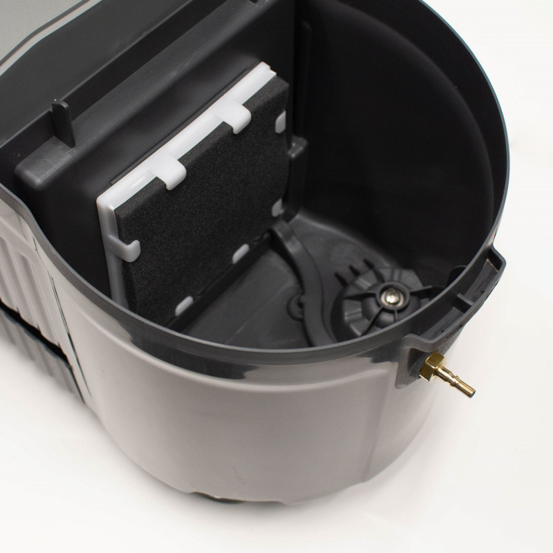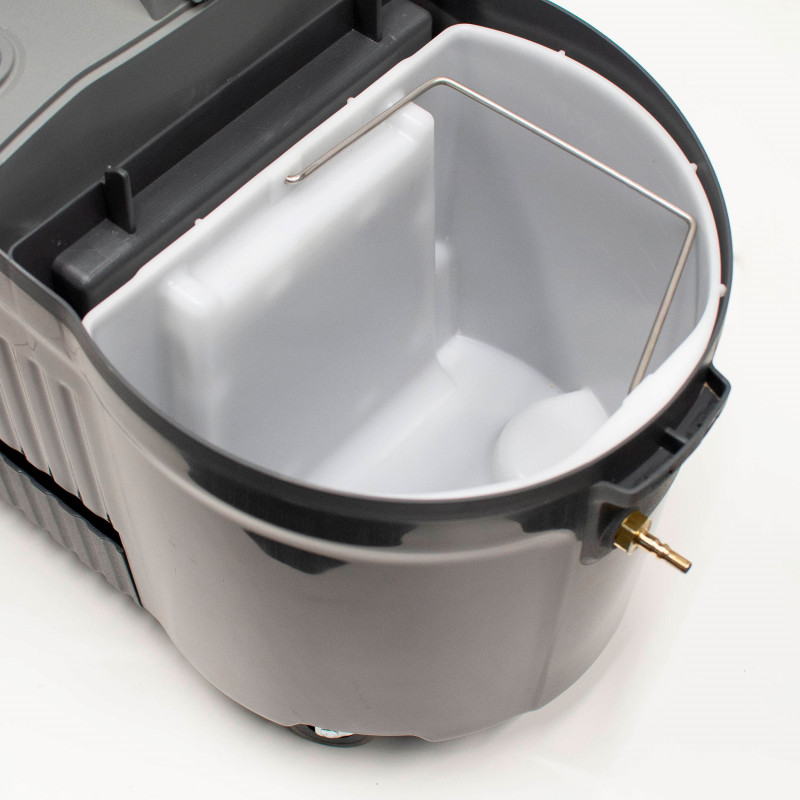 Fabricación en PP 100% reciclable, resistente a altas temperaturas, tensiones e impactos, resultando en un plástico de mayor durabilidad y que no es quebradizo, como es habitual en productos de gama baja. Esto es una gran ventaja en aquellos componentes expuestos recibir golpes como los depósitos de agua o aquellos sobre los cuales se ejerce presión, como es el caso de la boquilla de mano, sobre la que se ejerce presión manual a la hora de realizar la limpieza de la superficie.