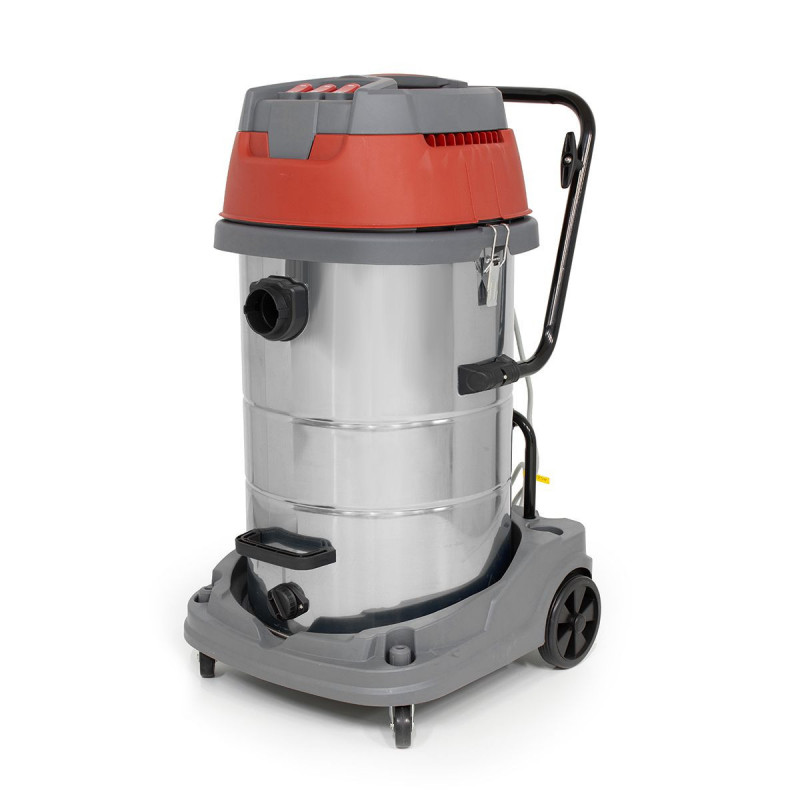Aspirador profesional de alta potencia (4800W) diseñado para la limpieza en seco de almacenes y naves industriales. Equipado con un depósito de 80 litros, el carro del aspirador dispone de un sistema de inclinación que permite una fácil descarga del material aspirado. Además se puede conectar una manguera de succión de hasta 20 metros lo que lo convierte en el aspirador idóneo para la limpieza de autobuses, camiones y trailers. Dispone de tres motores Ametek de 1600W cada una proporciona una potencia de aspiración muy alta capaz de aspirar sólidos pesados.