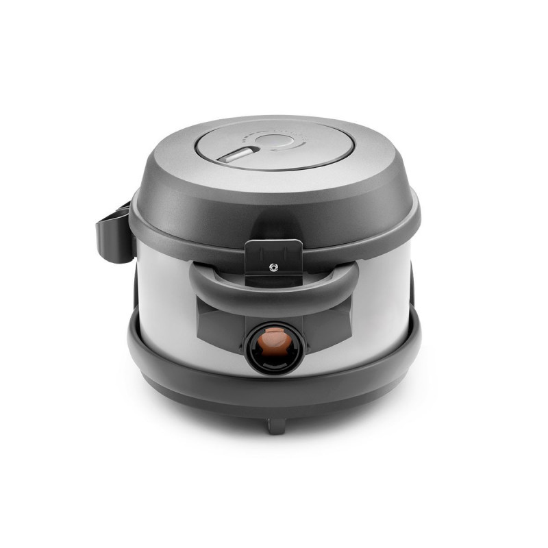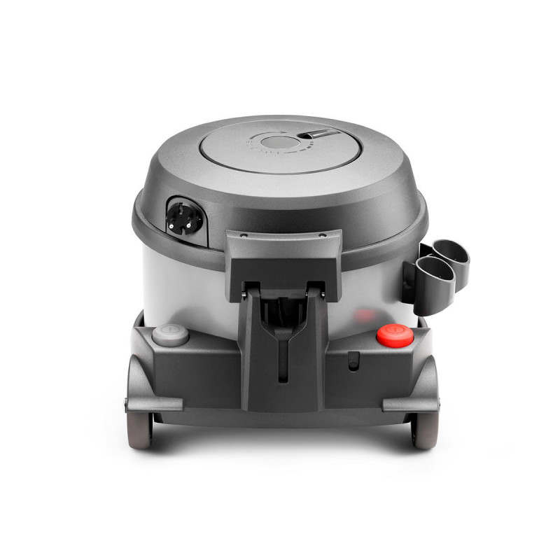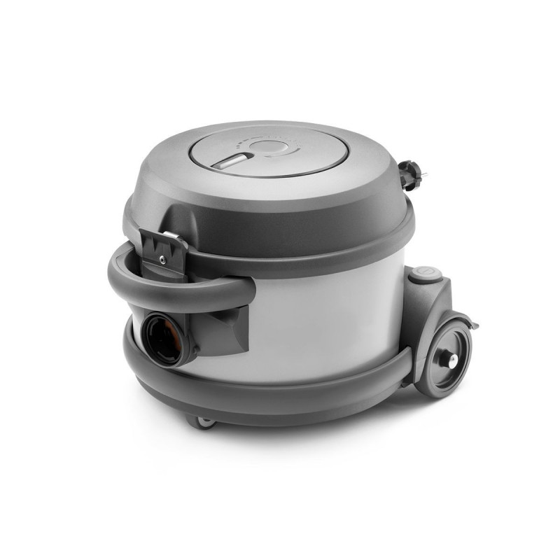 Aspirador de bolsas profesional idóneo para la limpieza tanto de pequeñas como de grandes superficies. Posee un carrete de cable manual semiautomático de 15 metros que facilita la puesta en marcha y la ejecución de un buen trabajo. Además, posee un motor Ametek ECO que proporciona una potencia de succión muy alta con un bajo consumo de energía. También existe la posibilidad de trabajar con el aspirador en posición vertical, perfecto para la limpieza de escaleras.