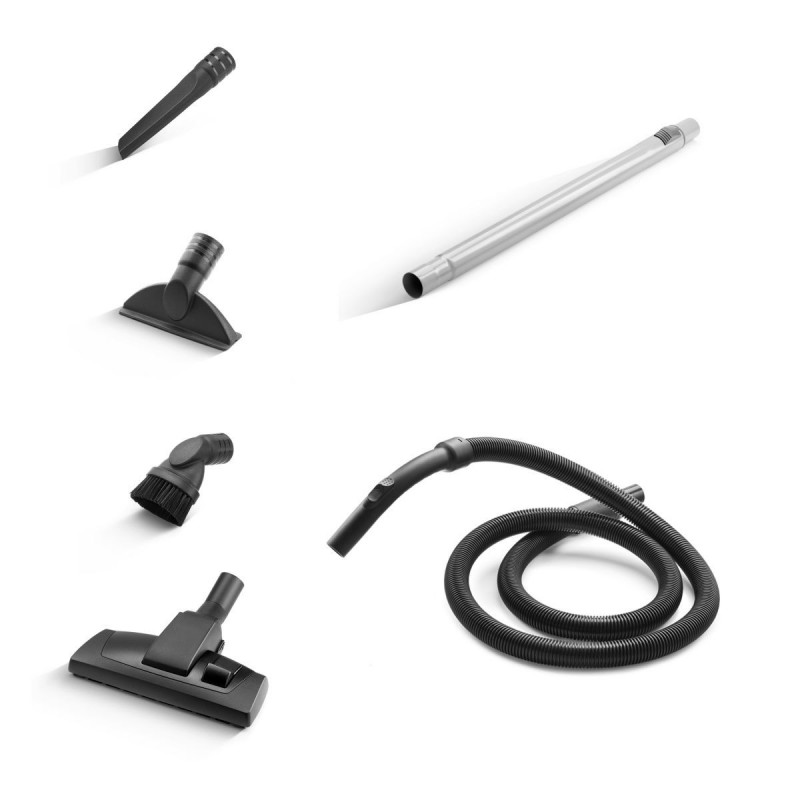 Aspirador profesional silencioso (67dB) con bolsa para la limpieza en seco tanto de pequeñas como de grandes superficies. Posee un carrete de cable retractor automático de 7 metros que facilita la puesta en marcha y la ejecución de un buen trabajo. Además, posee un motor Ametek ECO que proporciona una potencia de succión muy alta con un bajo consumo de energía. También existe la posibilidad de trabajar con el aspirador en posición vertical, perfecto para la limpieza de escaleras. Dispone de toma de corriente para cepillo eléctrico. Este aspirador equipa bolsa de microfibra con filtración HEPA además de un filtro HEPA H12 de serie.