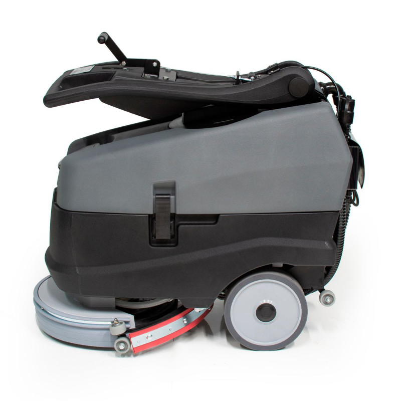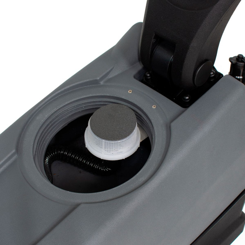 Fregadora de suelos compacta a baterías, 36cm de ancho de trabajo, 17 y 18 Litros de capacidad de los tanques de agua limpia y agua sucia.
